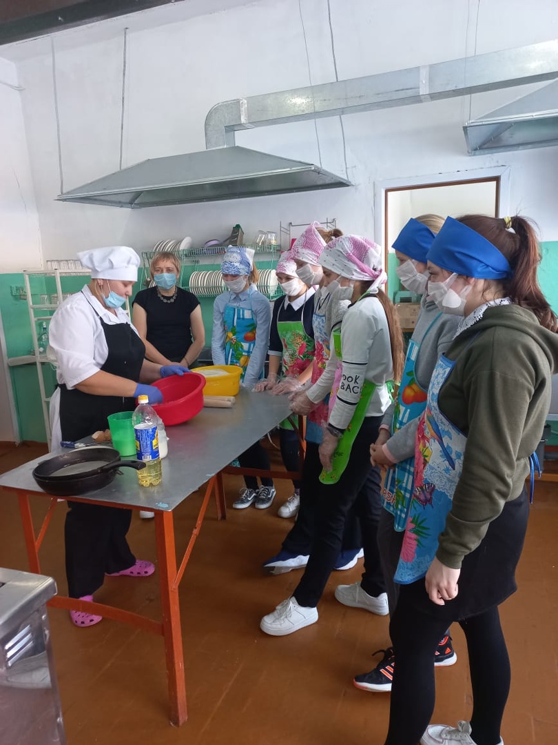 Обучающиеся школы под руководством повара школы участвовали в мастер-классе по приготовлению национального башкирского и татарского блюда «Кыстыбый».