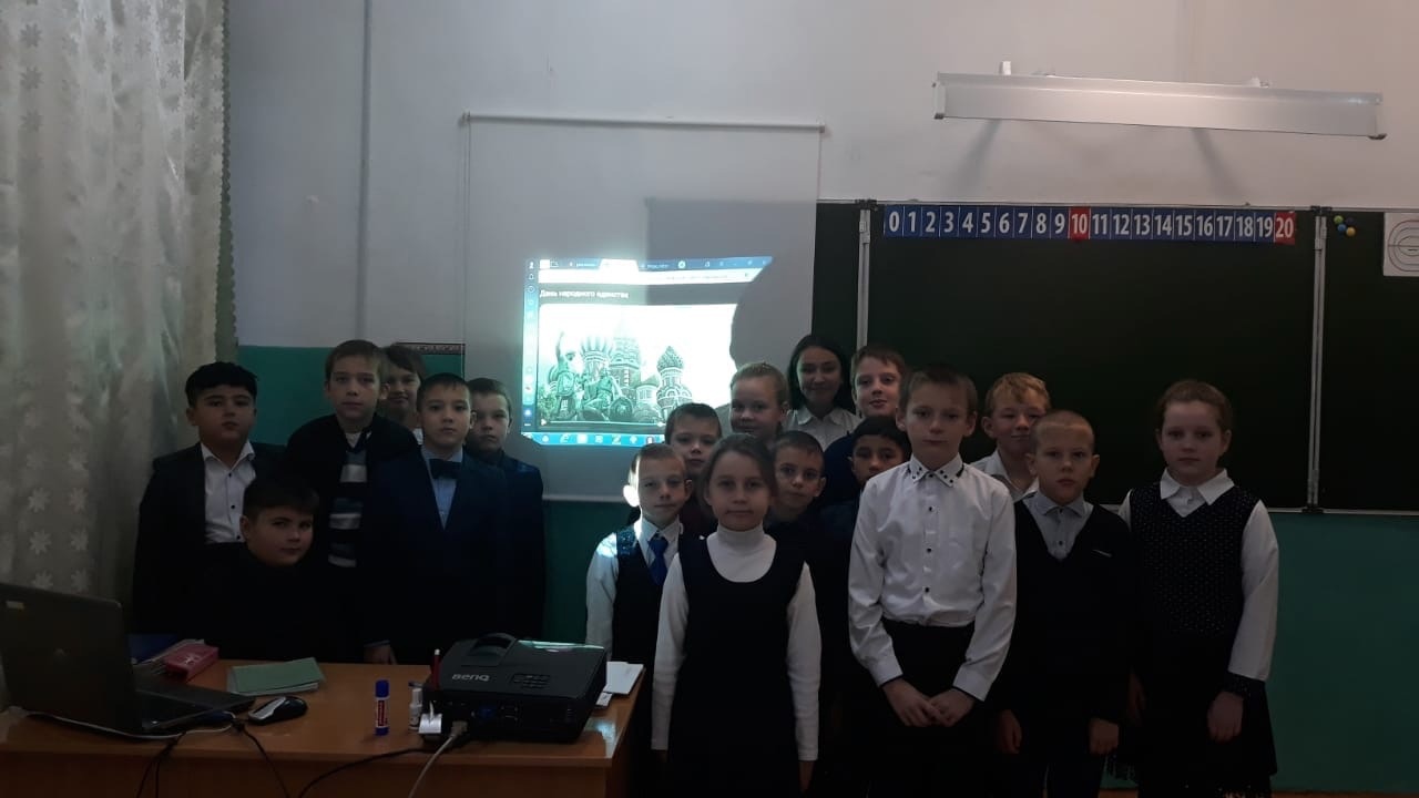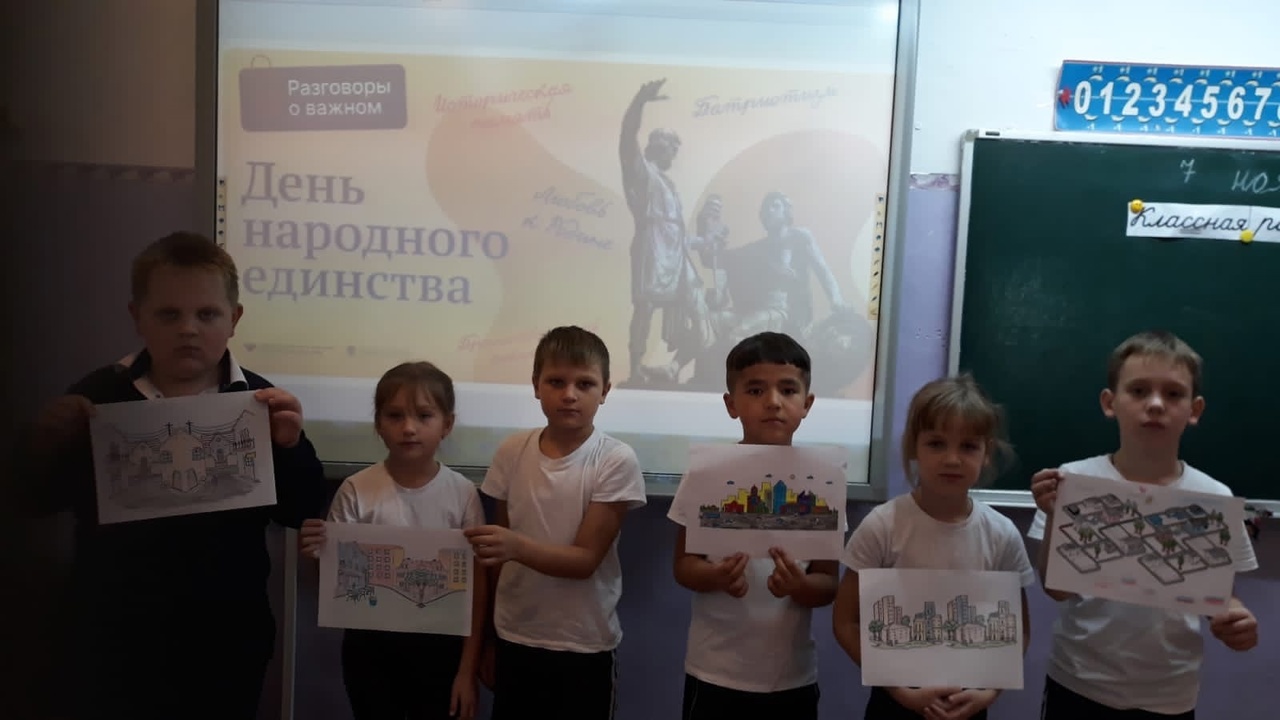 Занятия прошли в форме беседы с использованием видеоролика , интерактивных заданий и были посвящены истории нашей страны. Учащиеся осознали себя частью единой многонациональной страны. День народного единства способствует объединению всех национальностей , народностей и этносов в один русский народ ради развития и процветания Россия.