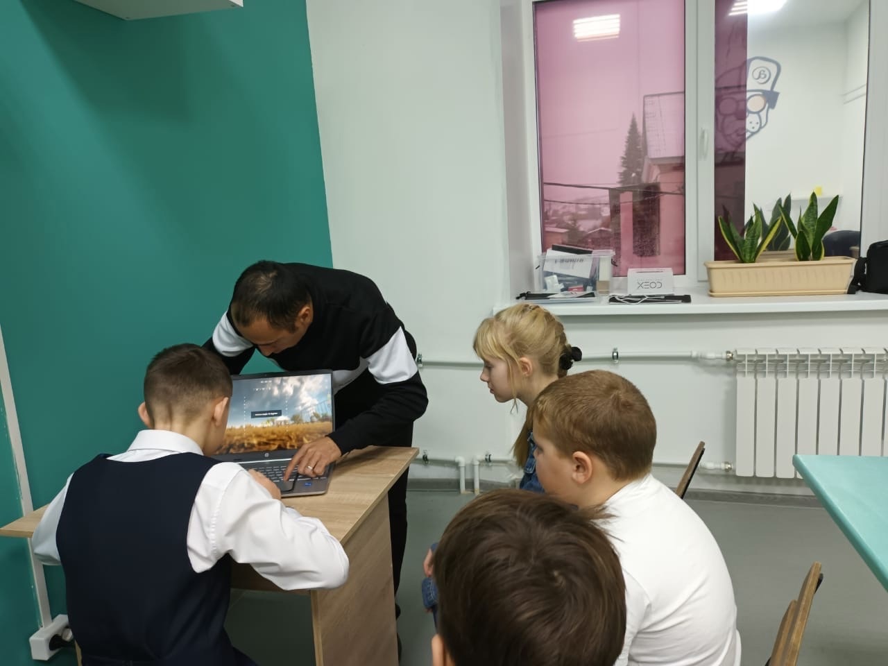 Педагог Детского технопарка г.Благовещенск Акбиров Марсель Масгутович, руководитель кружка "Аэромоделирование", учит учащихся МОБУ ООШ с. Николаевка виртуальному управлению дроном и в реальности