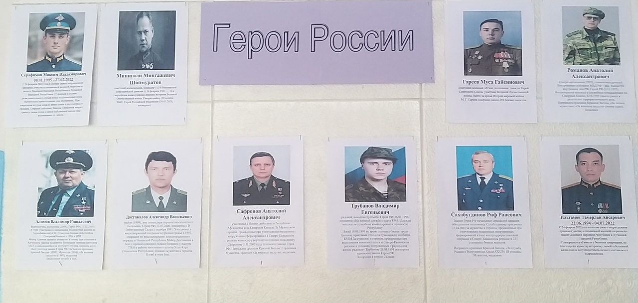 Также в нашей школе учился Герой Советского Союза Дьячков Александр Васильевич. Александр Васильевич Дьячков- Советский военный деятель. Командир отделения взвода пешей разведки 861-го стрелкового полка 294-й стрелковой дивизии 52-й армии, младший сержант, Полный кавалер ордена Славы. Родился25 октября 1921 г., село Николаевка, Благовещенского района Башкортостан. Умер8 сентября 1961 г. В возрасте 39 лет. 9 мая 2016 г ему открыта мемориальная доска