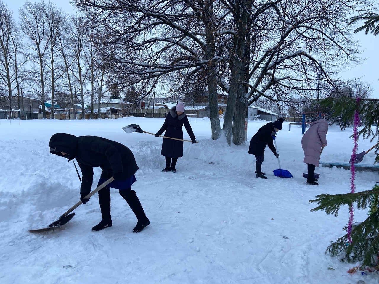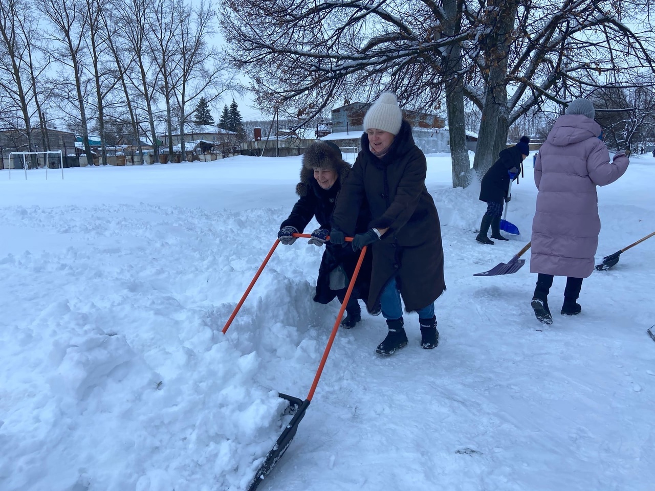 Очистили от снега и привели в порядок прилегающую территорию школы.